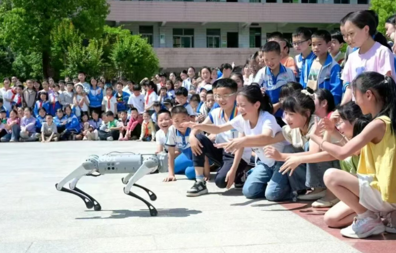 四川省通江县至诚镇光辉希望小学学生观看机器狗表演。资料图片